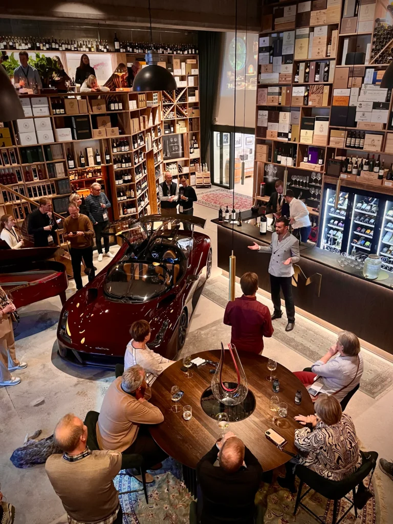 Leave the boardroom behind and treat your guests to an evening surrounded by luxury cars, fine architecture, and handcrafted design. One of our most remarkable venues is My Garage in Vejle—a place where passion for exceptional wines meets the elegance of automotive art.